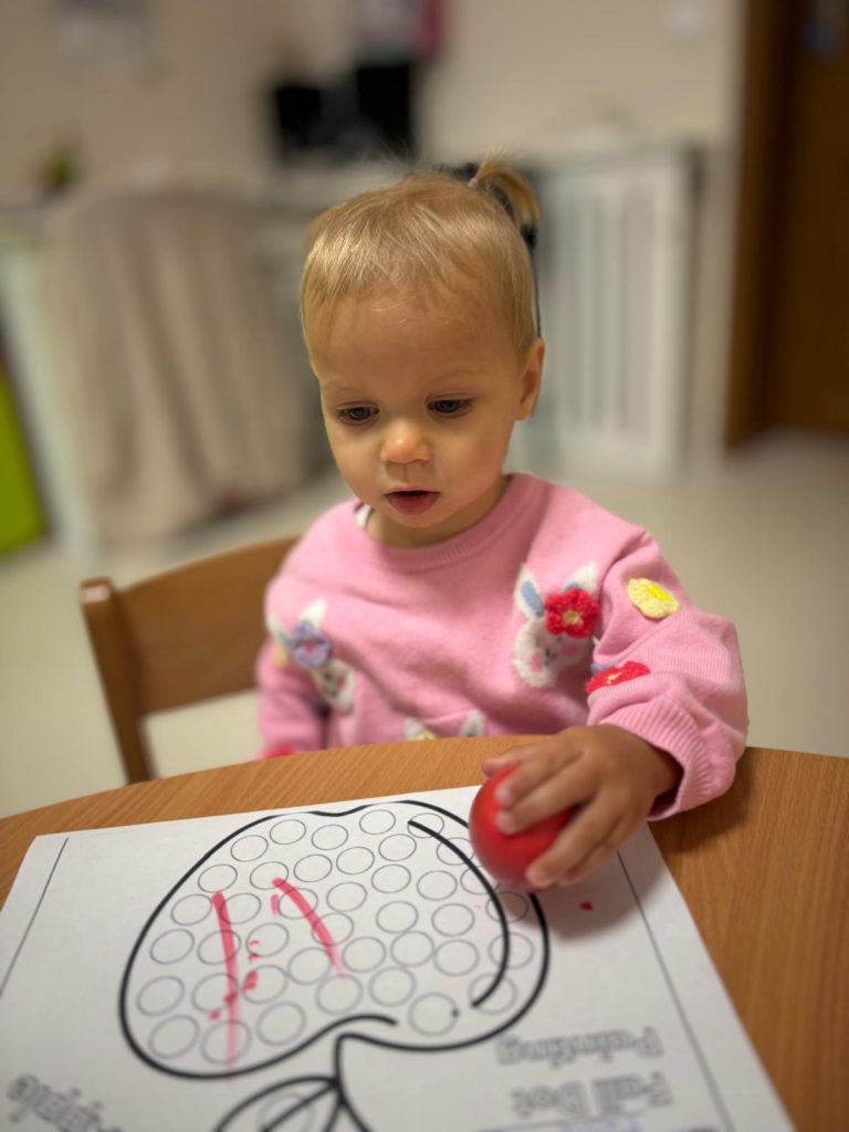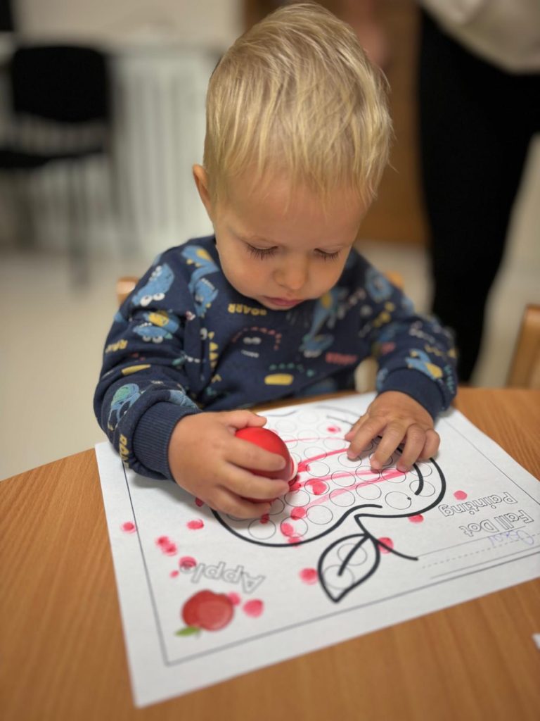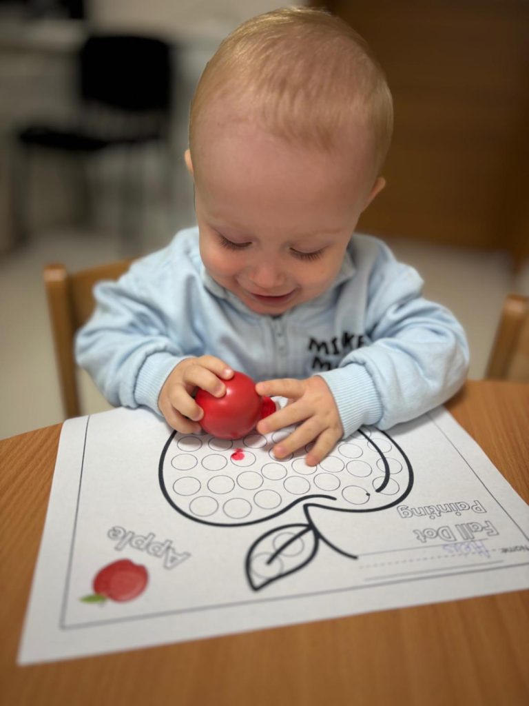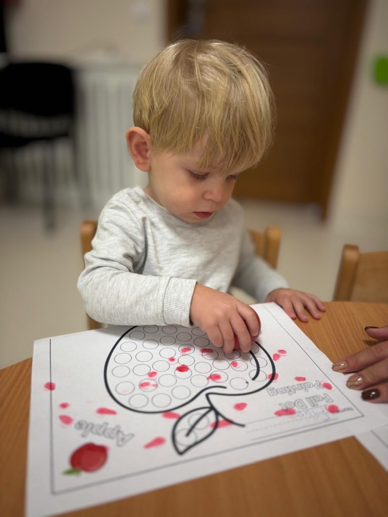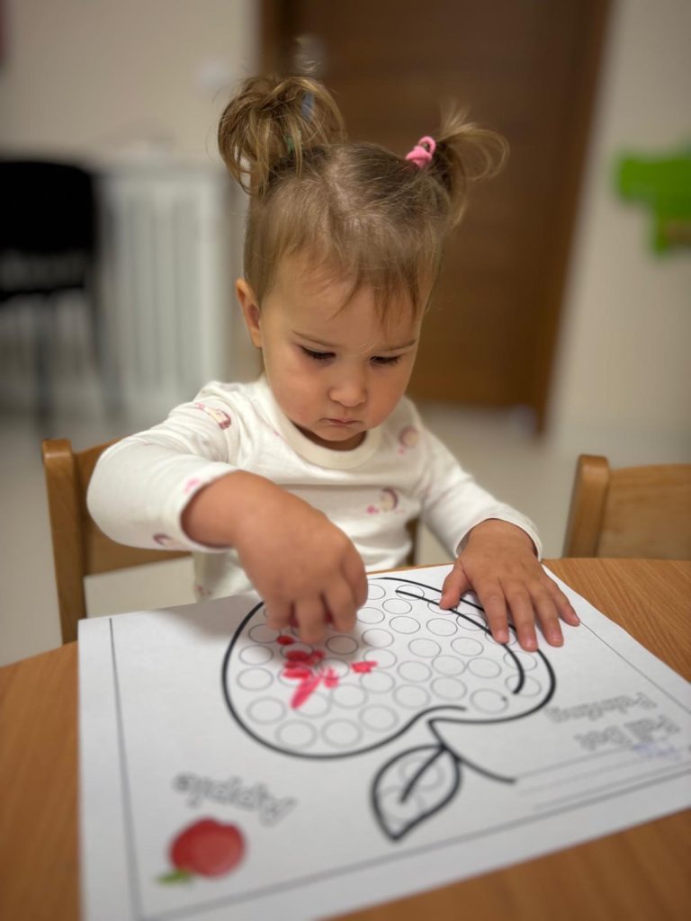 Dnia 25 września obchodziliśmy w żłobku „Dzień Jabłka”. Celem zajęć i wspólnej zabawy była integracja wszystkich dzieci oraz zachęcanie ich do spożywania owoców, a w szczególności jabłek i to pod różnymi postaciami z powodu walorów zdrowotnych i odżywczych. Dzieci poszerzały wiedzę o jabłku, rozpoznawały kształt, zapach, kolor, smak, próbowały musu jabłkowego. Maluszki wykonały pracę plastyczną przedstawiającą jabłko.