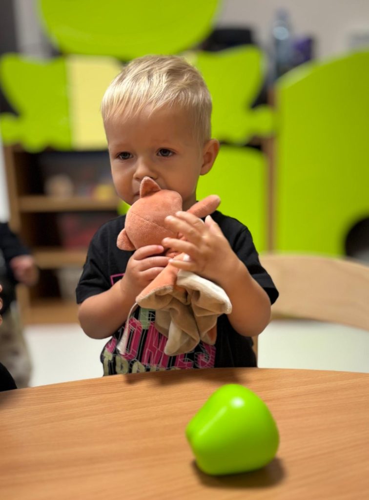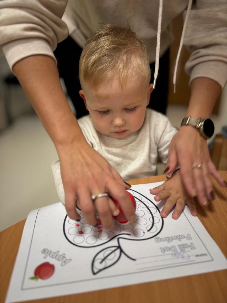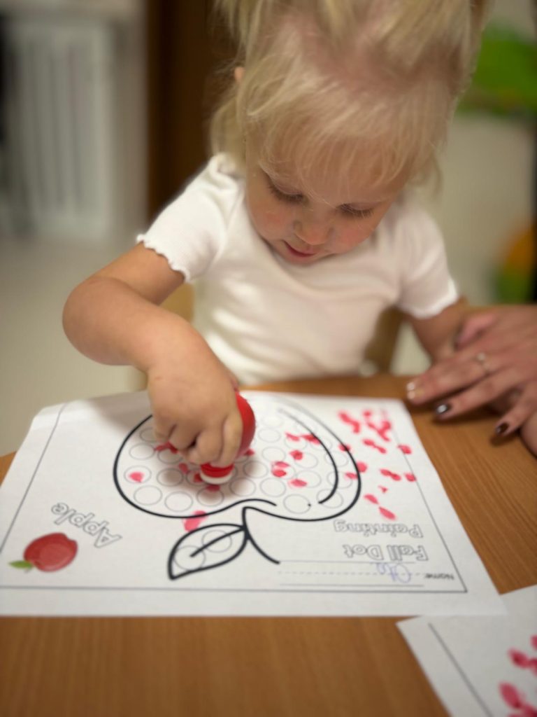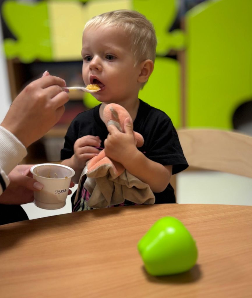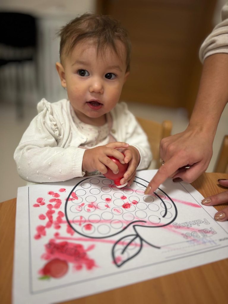 Dnia 25 września obchodziliśmy w żłobku „Dzień Jabłka”. Celem zajęć i wspólnej zabawy była integracja wszystkich dzieci oraz zachęcanie ich do spożywania owoców, a w szczególności jabłek i to pod różnymi postaciami z powodu walorów zdrowotnych i odżywczych. Dzieci poszerzały wiedzę o jabłku, rozpoznawały kształt, zapach, kolor, smak, próbowały musu jabłkowego. Maluszki wykonały pracę plastyczną przedstawiającą jabłko.