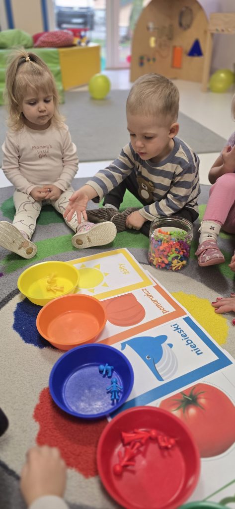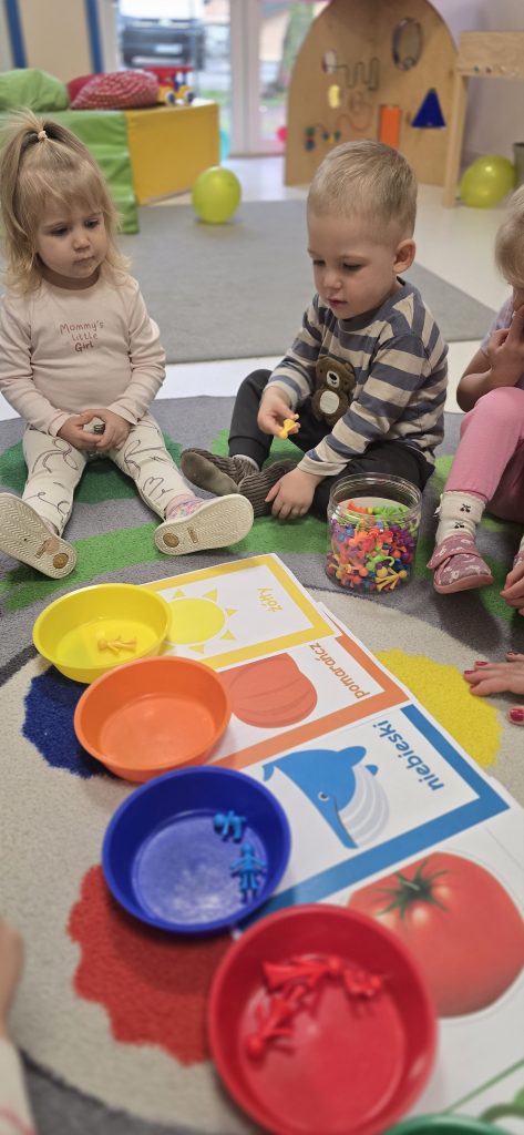 Dzieci z radością odkrywają świat barw – segregują, dopasowują i nazywają kolory, ucząc się poprzez zabawę i współpracę. 🌈🌈