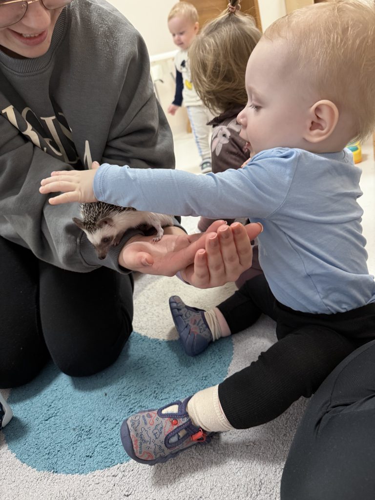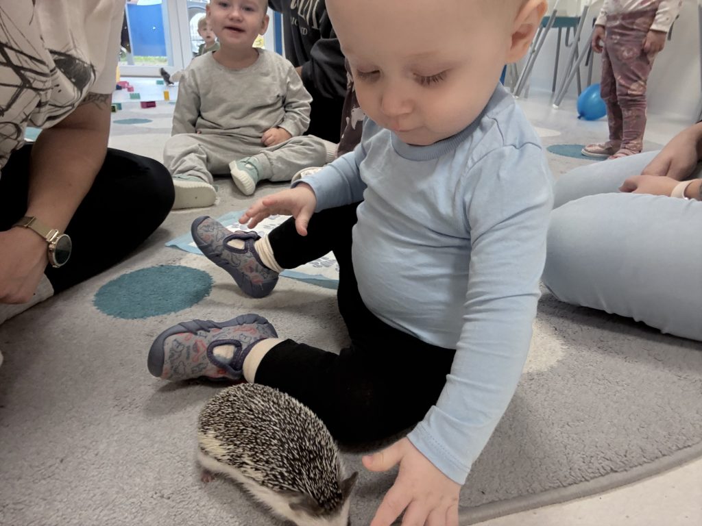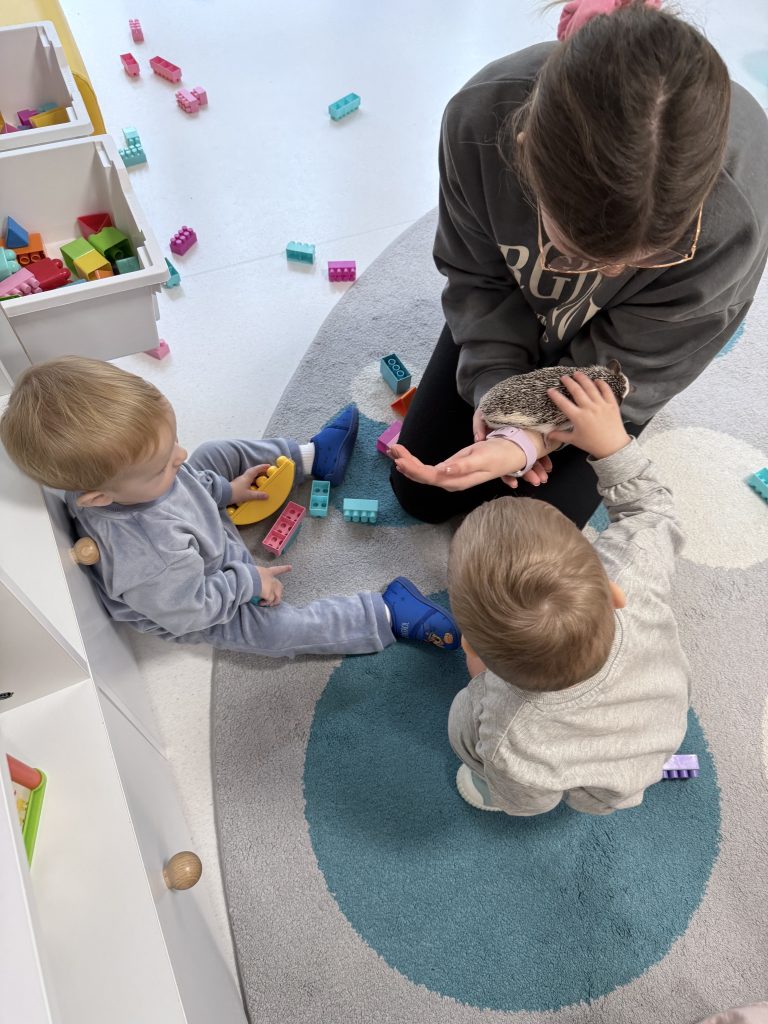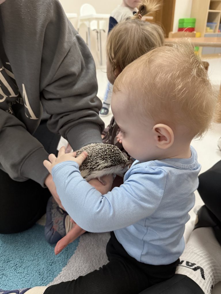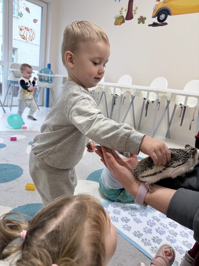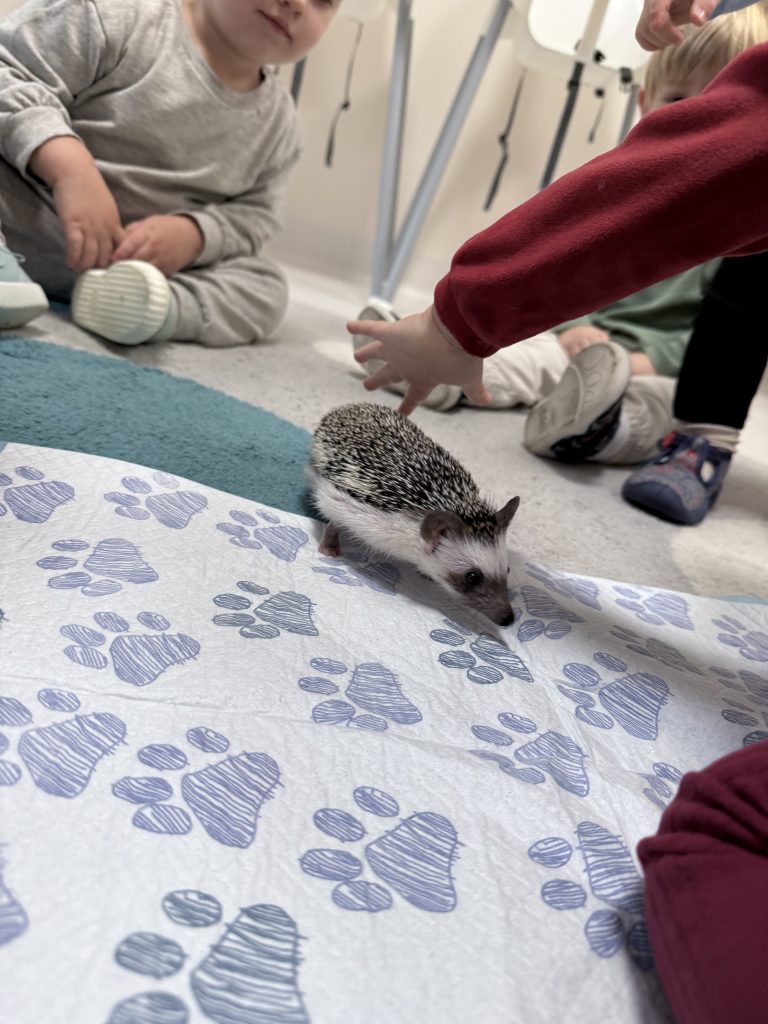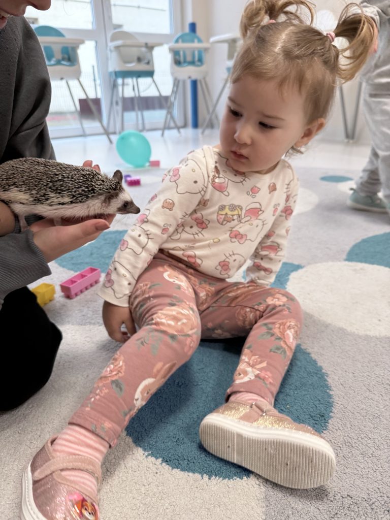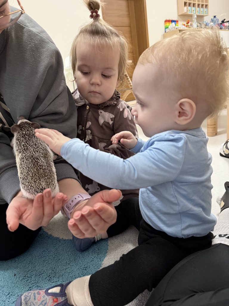 Dnia 17.11.2025r, obchodziliśmy Dzień Jeża, z tej okazji odwiedziła nas Pani Agata z Jeżynką ; ). Tego dnia dzieci miały okazję poznać ich sposób poruszania się. Dzieci zapoznały się z jej wyglądem, dotykały i głaskały, zaciekawione podziwiały małe zwierzątko.