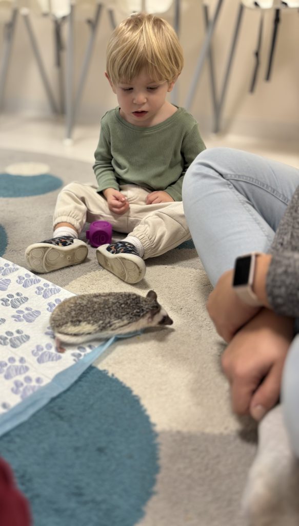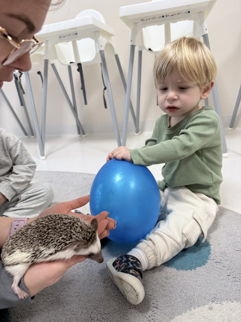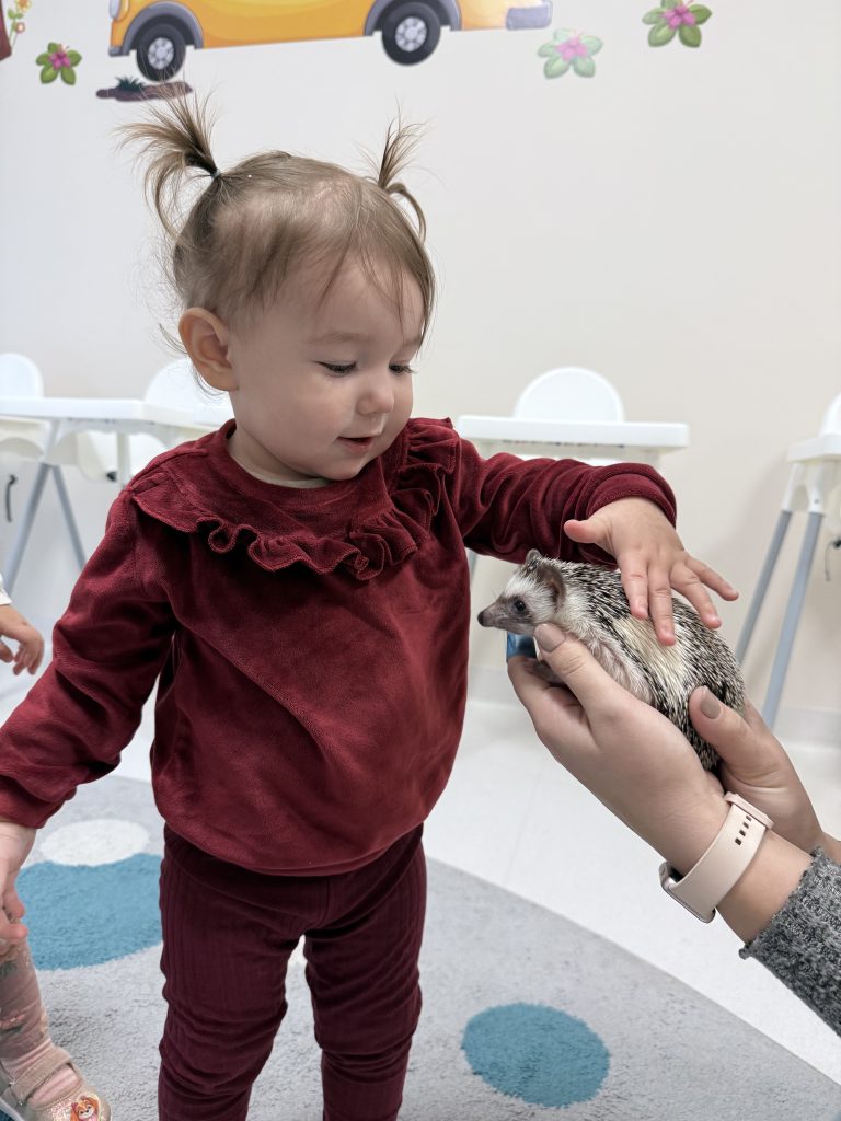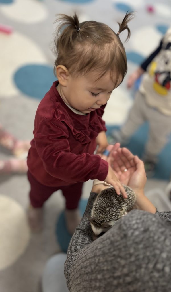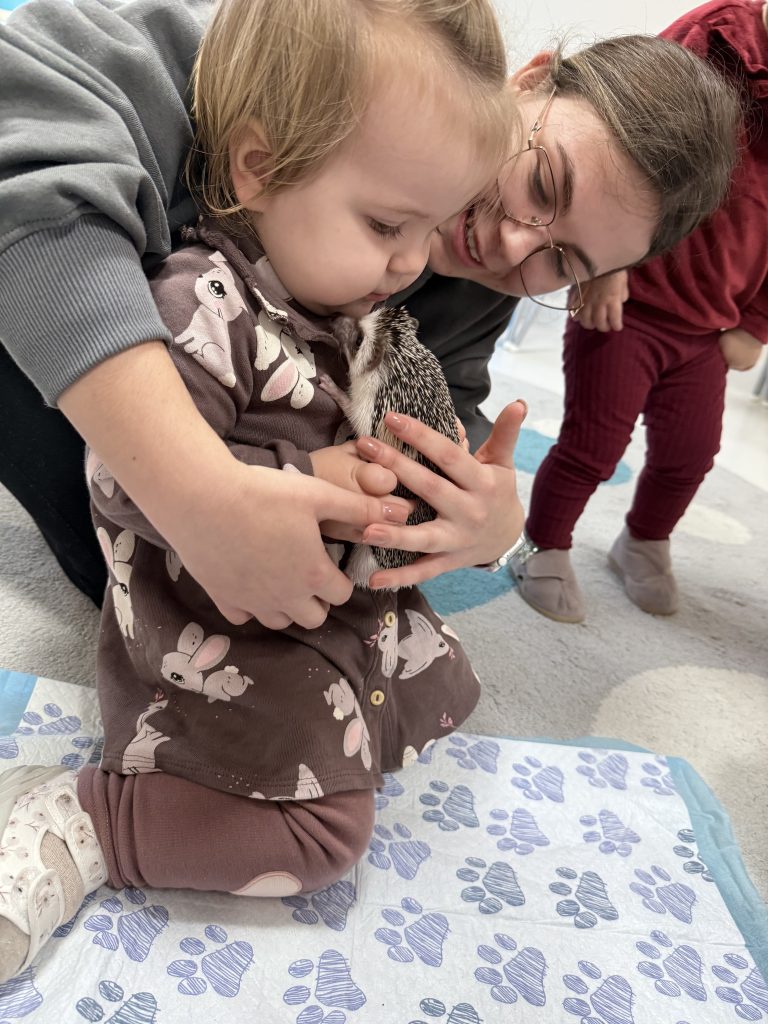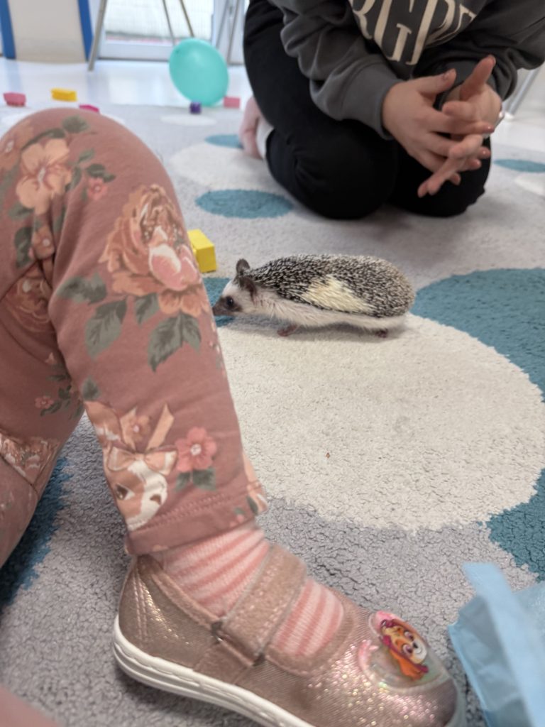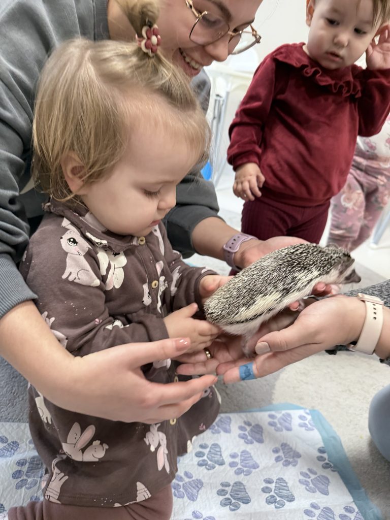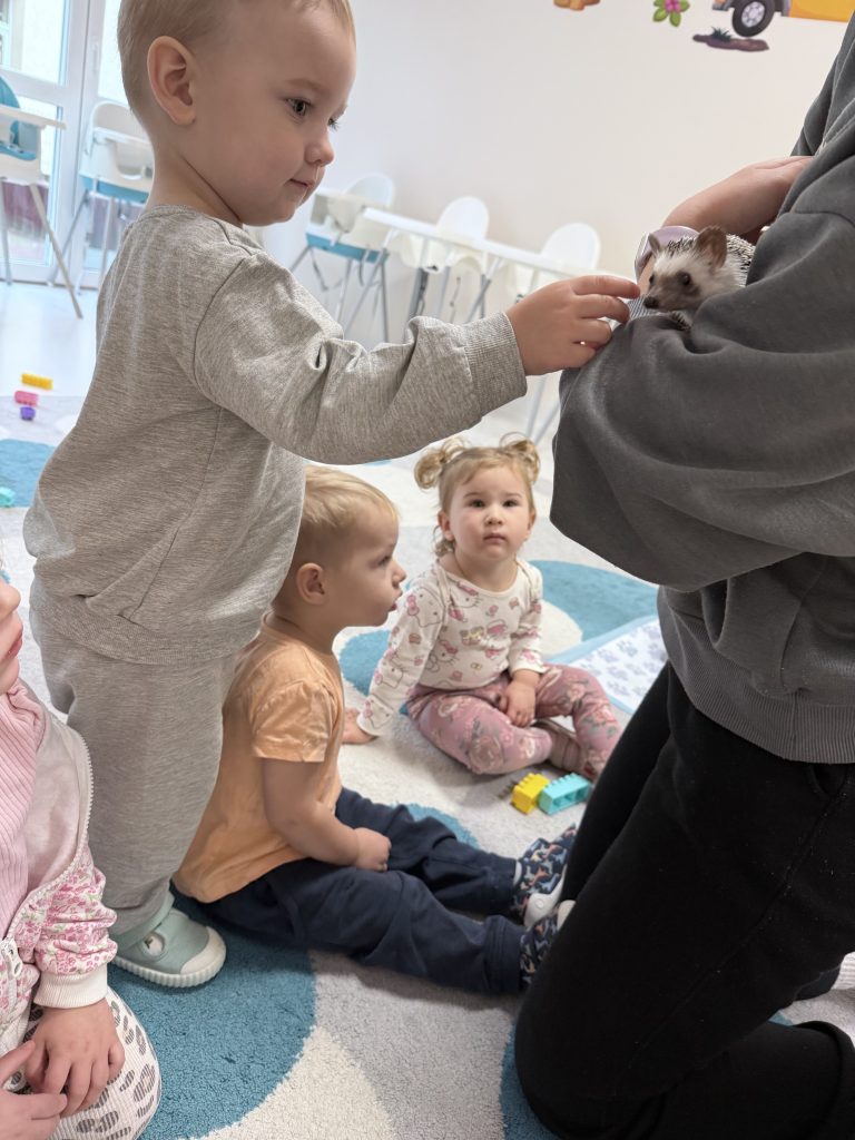 Dnia 17.11.2025r, obchodziliśmy Dzień Jeża, z tej okazji odwiedziła nas Pani Agata z Jeżynką ; ). Tego dnia dzieci miały okazję poznać ich sposób poruszania się. Dzieci zapoznały się z jej wyglądem, dotykały i głaskały, zaciekawione podziwiały małe zwierzątko.
