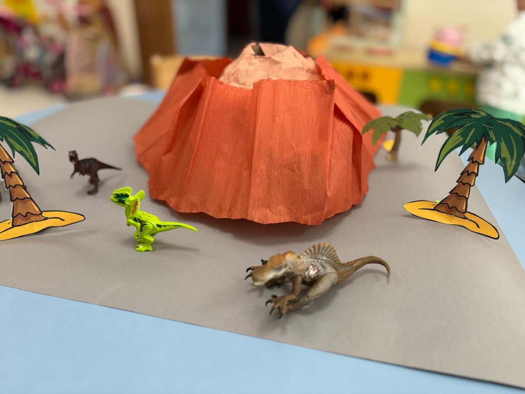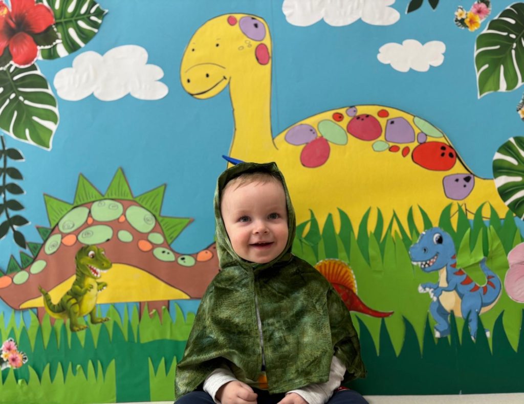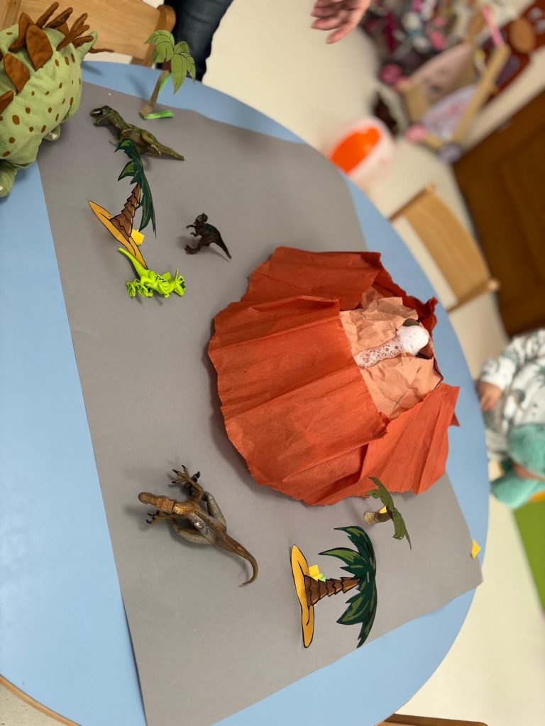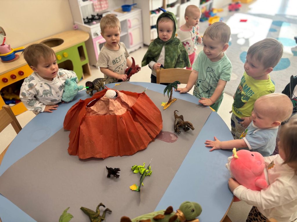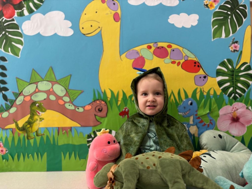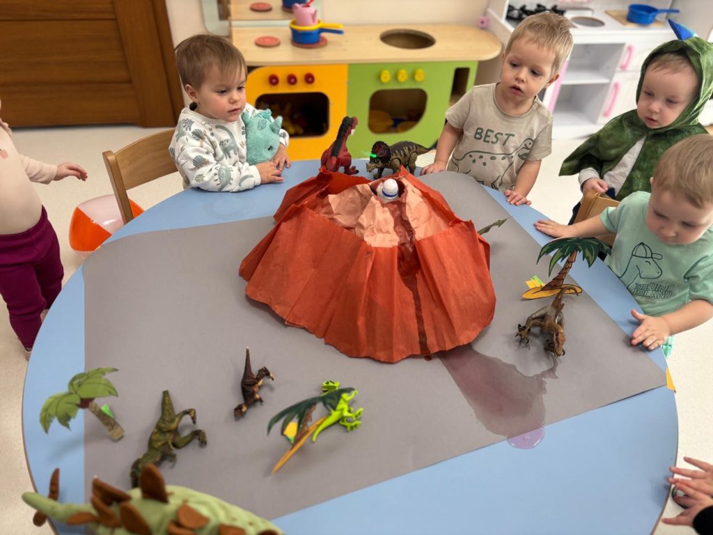 W czwartek 26 lutego obchodziliśmy w naszym żłobku Dzień Dinozaura! W tym dniu sale opanowały Tyranozaury, Stegozaury, Diplodoki, Pterodaktyle i wiele innych dinozaurów z minionych epok. W prehistoryczny świat przeniosła nas wspólna zabawa przy wybuchającym wulkanie, a z głośników słychać było odgłosy tych wielkich zwierząt. Dzieci wykonały prace plastyczną. Działo się naprawdę wiele ! Dzień Dinozaura przeniósł nas w odległy, fascynujący i wciąż tajemniczy świat.
