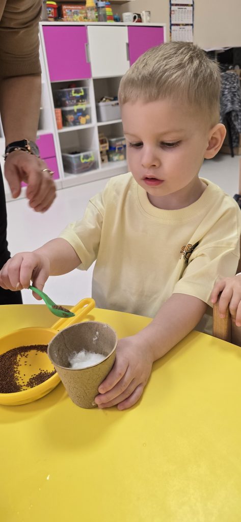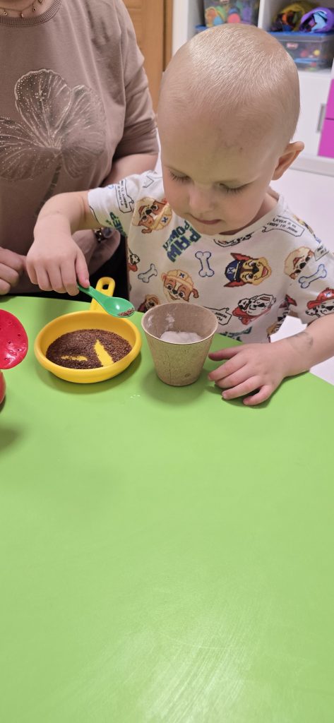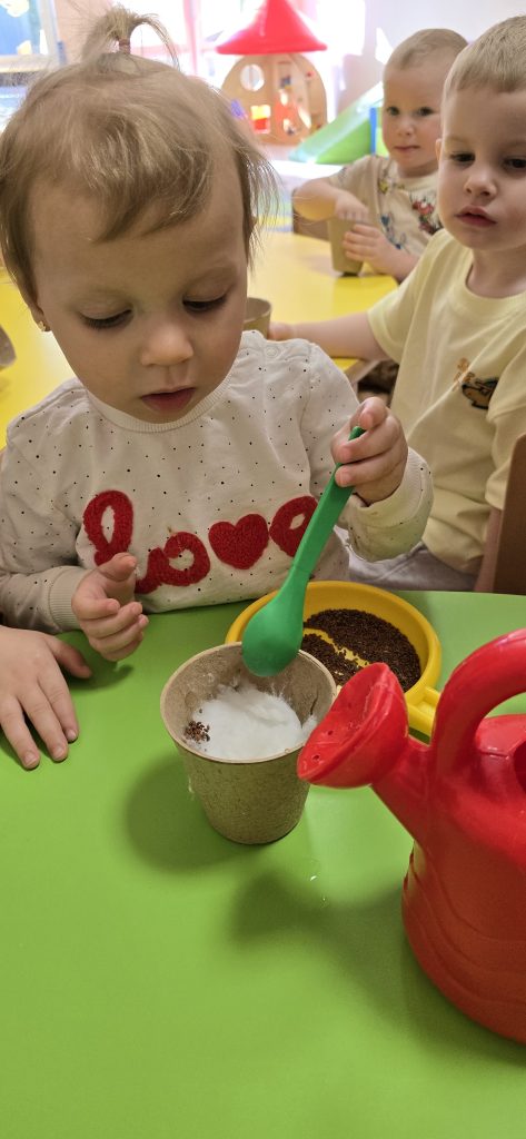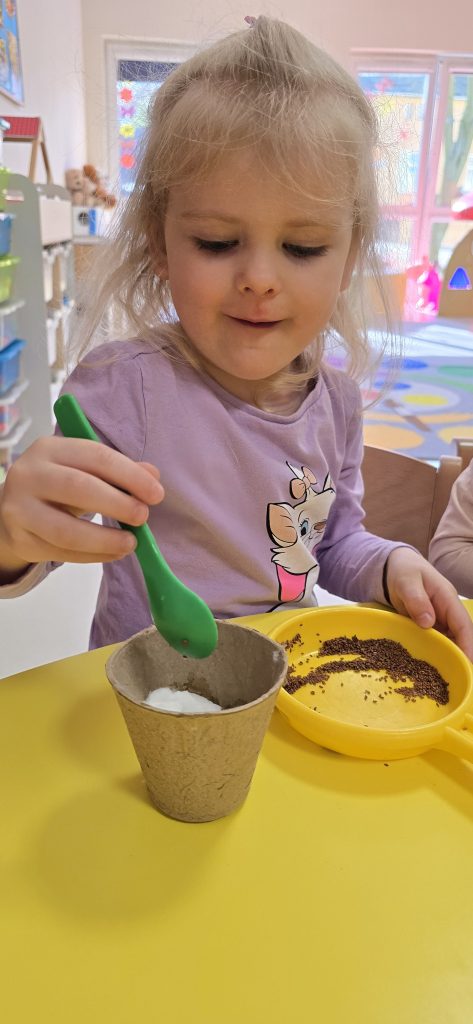Dzisiejsze zajęcia pokazały, że nawet z najmniejszych rzeczy może powstać coś wyjątkowego :). Dzieci z ogromnym zaangażowaniem wysiewały rzeżuchę, tworząc swoje zielone mini-ogródki.